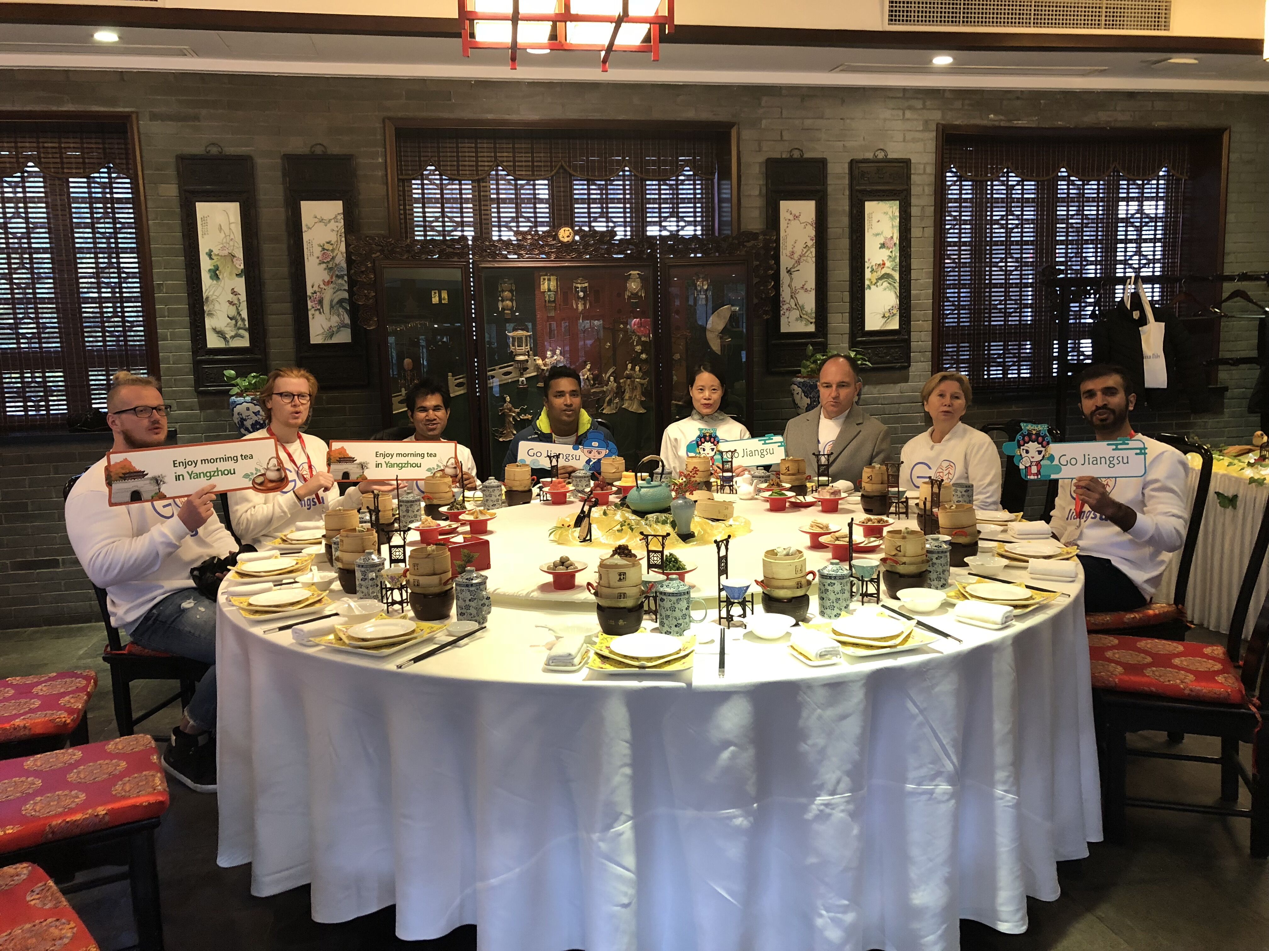11月14日一大早,由中国日报网和江苏省政府新闻办主办的“美好江苏”海外社交媒体“Go JiangSu”外籍粉丝线下体验活动来到冶春御马头店,体验扬州早茶,品味中西文化的碰撞和交融。本次活动以“吃早茶去”为主题,邀请了来自澳大利亚、奥地利、巴基斯坦、芬兰、波兰、斯洛伐克和孟加拉国等7个国家的8名粉丝参加。