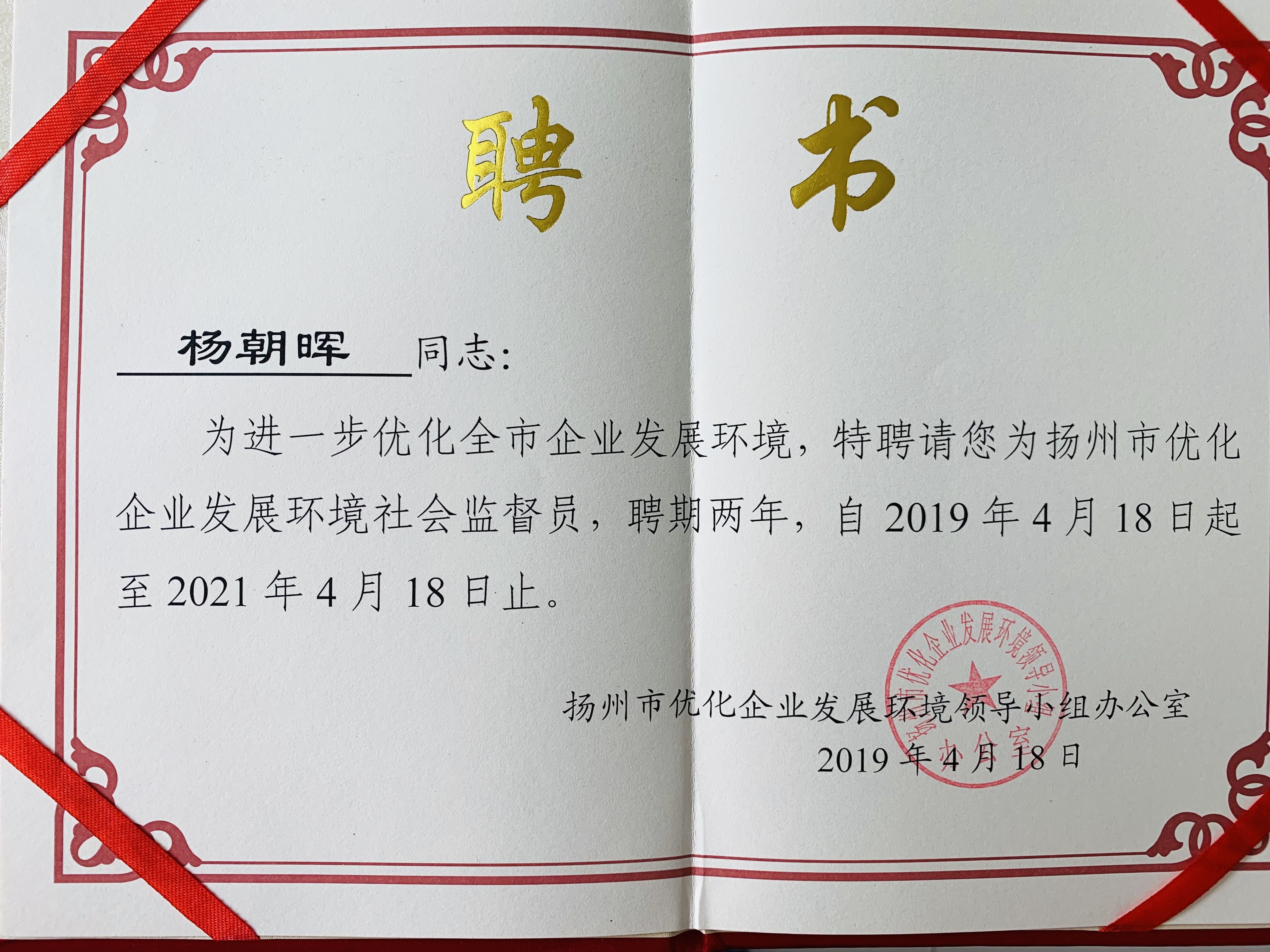 近日,为进一步推进2019年市委、市政府“2号文件”的贯彻落实,全面支持企业高质量发展,冶春食品杨朝晖等100位同志被聘请为扬州市优化企业发展环境社会监督员,其所在企业为市优化办营商环境监测点企业。 此次聘请活动是进一步完善监督机制、拓宽监督渠道的重要举措。从全市人大代表、政协委员、企业代表和各县区、产业园区中公开聘请100位社会监督员,全力以赴为企业家营造“亲商、重商、富商”的发展氛围,构建“无事不扰、有求必应”的服务企业机制,重点监督招商引资、项目建设、营商环境建设、群众反映的热点难点问题,督促各地、各相关部门及其工作人员认真践行和落实‘项目为王’理念,不断提升服务水平,以‘马上办、钉钉子’的务实精神,帮助企业减轻负担、轻装上阵,切实增强企业做大、做强的信心。(冶春食品 胡文超) |