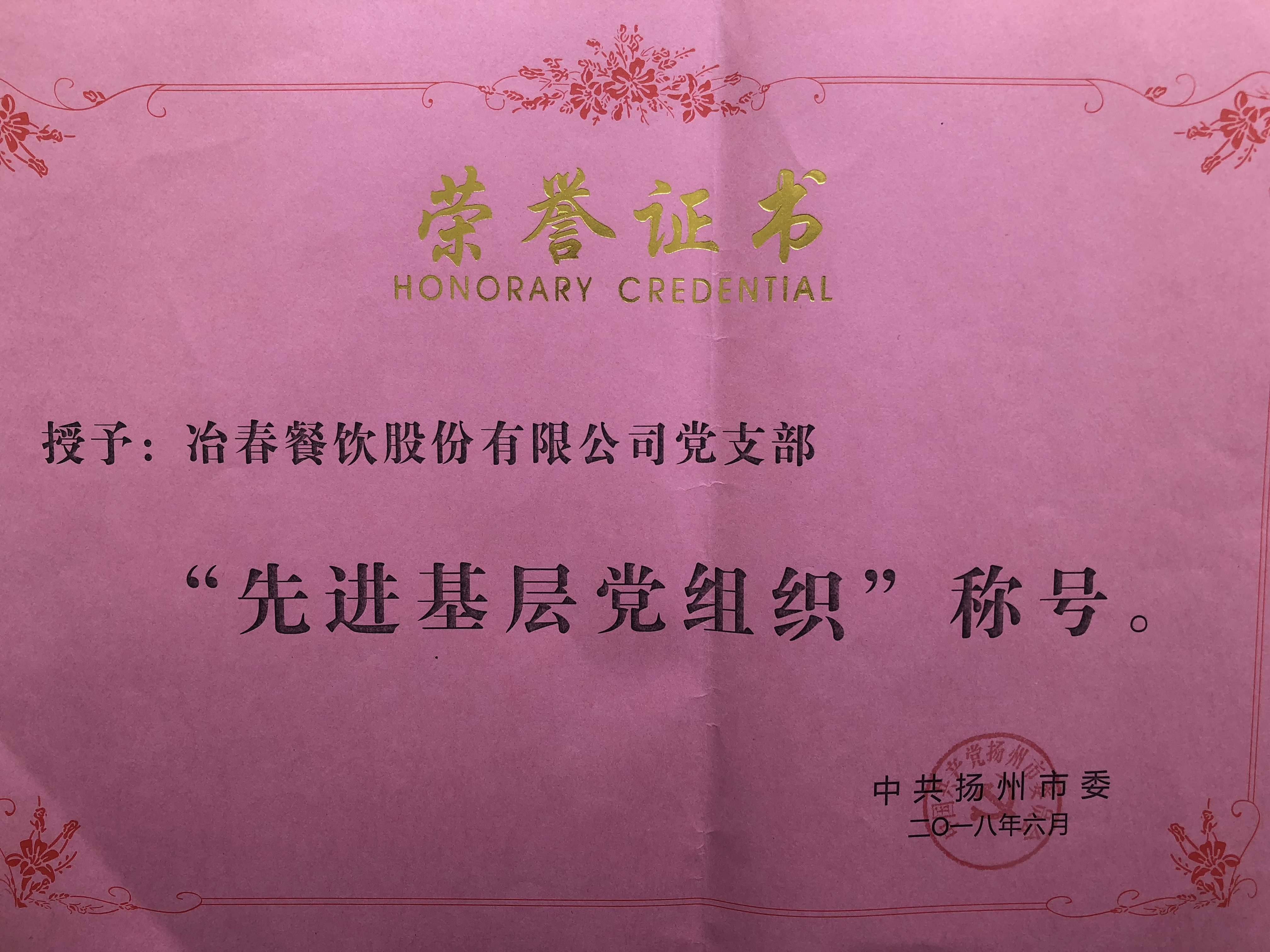 冶春餐饮党支部荣获市级“先进基层党组织”称号