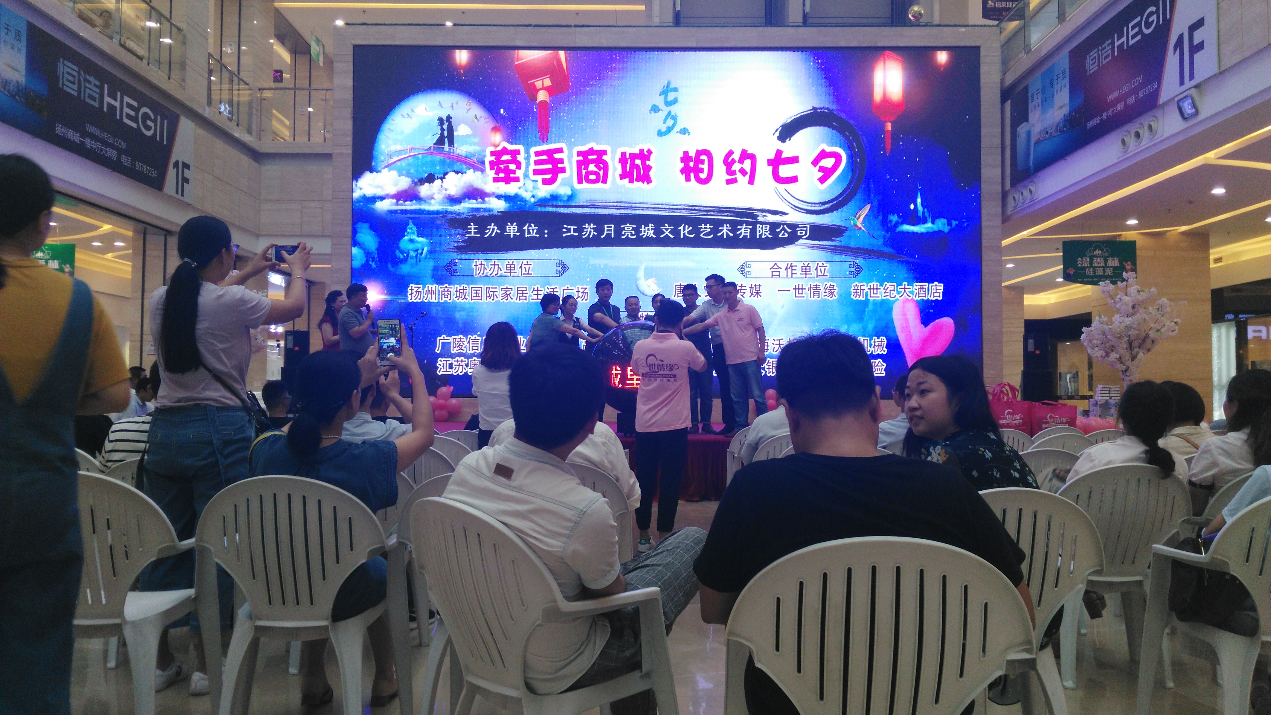 在满含浪漫气息的中国情人节——七夕到来之际,扬州商城联合市广播电视台共同举办了“聚惠七夕 大爱之城”、““牵手商城 相约七夕”等系列营销与大型相亲会公益活动,活动现场人气高涨、气氛热烈。现场由建材、家居、婚庆、摄影、通讯、娱乐、出行服务等众多不同业态的商家联合推出抽奖、赠礼、折扣、服务等活动,促进了市场销售;相亲主题公益活动给单身青年男女创造了展示自我、收获爱情的平台,带来良好的社会效果。(扬州商城 徐建)