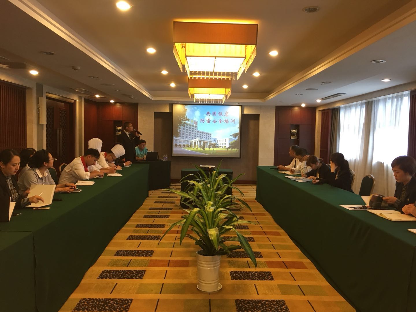 8月17日下午两点半,西园饭店邀请蓝天防雷工程公司陶工程师在四楼云杉厅会议室,对饭店各部门领班以上人员及工程保障部员工开展了一次防雷安全知识培训。培训中陶工以扬州近年来的雷灾案例开篇,给参培人员深入浅出地讲解了雷电的基本常识、综合防雷技术,还普及了日常生活中所需掌握的人身防雷常识。此次培训提高了饭店员工的防雷安全意识,增强了员工们应对雷电灾害的能力,提升了西园饭店安全保障工作水平。(西园饭店)