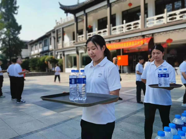 参与此次“夏季大练兵”的人员,从总经理到计时工,从50后一直到90后,全体员工一视同仁,分五批次在冶春御马头店进行轮训。内容涵盖军训和服务技能培训,军训主要包括稍息、立正、转体等队列训练,服务技能培训主要包括服务站姿和托盘等技能训练。