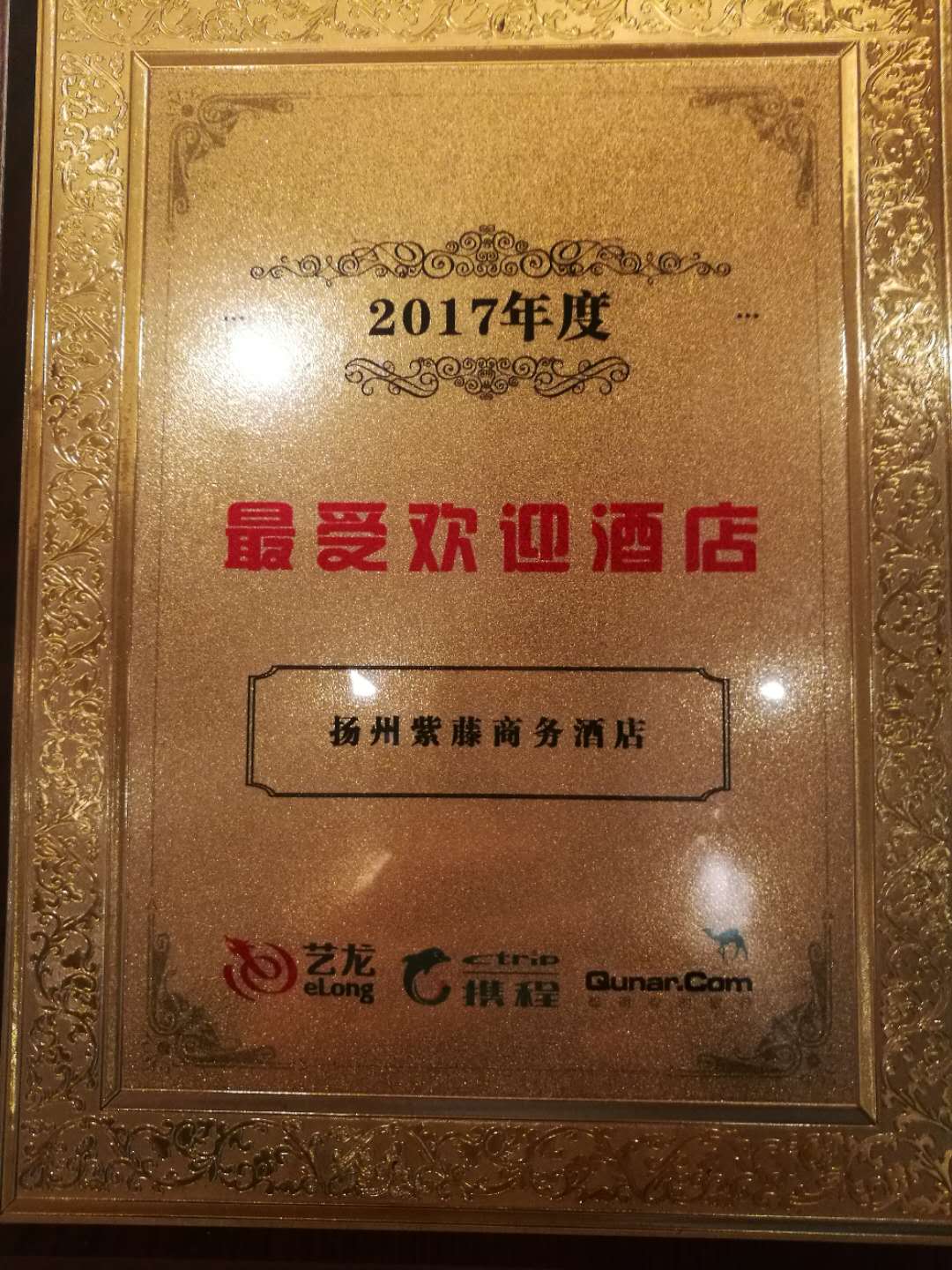 紫藤商务酒店紫藤商务酒店荣获“携程旅行网2017年度最受欢迎酒店奖”