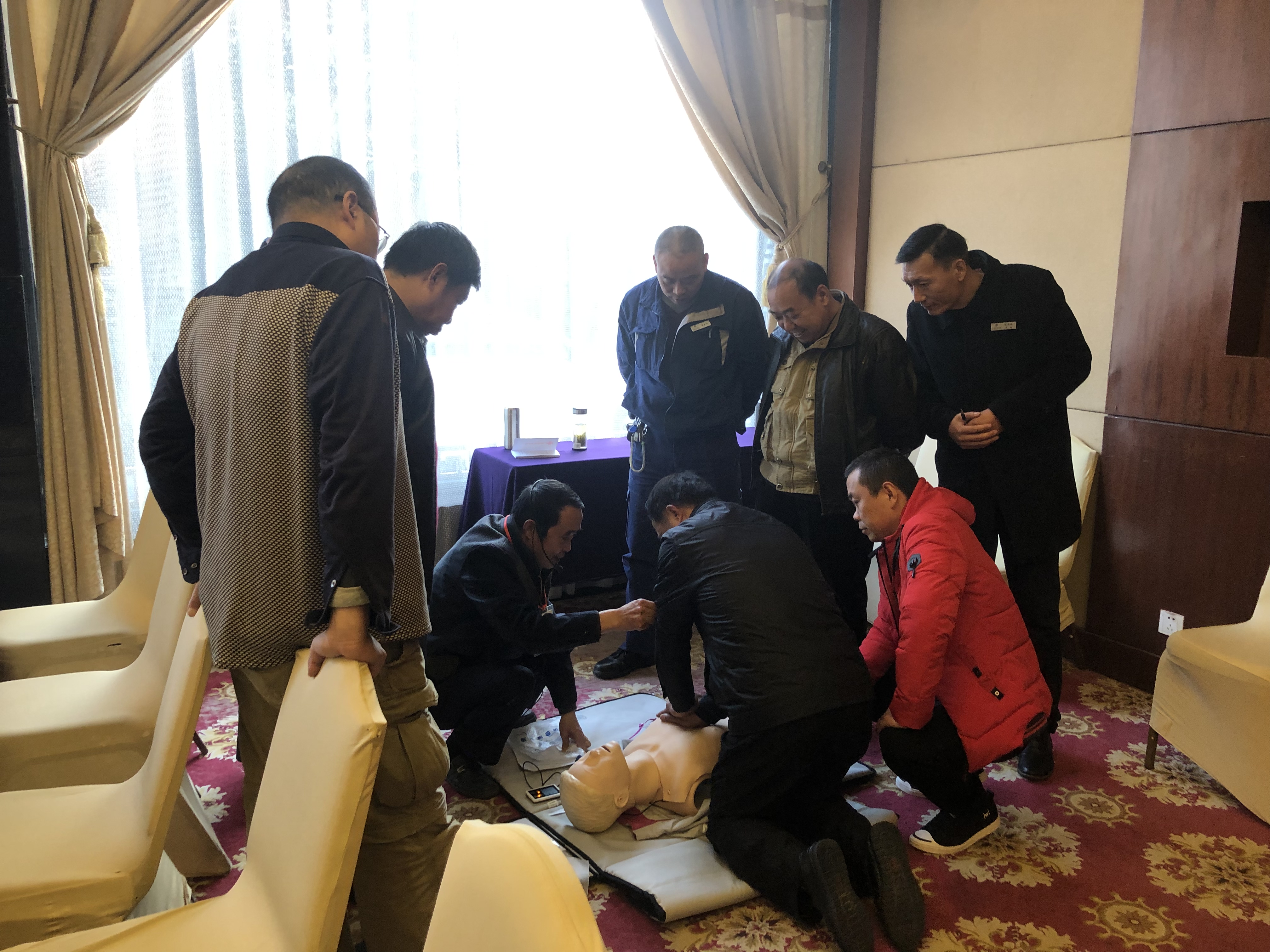 为了普及正确的基本救护理念和技能,在突发事件中争取“救命的黄金时刻”,11月22日,扬州市红十字会对萃园城市酒店所有员工开展了救护培训讲座。 此次活动内容为心肺复苏及现场急救知识培训。培训中,老师用通俗易懂的语言给大家讲述了红十字运动基本知识、心肺复苏、创伤包扎、突发意外情况等四项,员工们认真听课,大胆提问,并争相演练心肺复苏,在人体模型前弯腰,按压,吹气,现场气氛十分活跃,使在场员工在活跃的气氛中切身体会并掌握了许多急救知识。 通过此次培训,不仅使大家掌握了一定的急救知识和技能,还增强了自身应对突发事件时的自救互救意识,不但可以保护自己,也可以对有需要的人及时伸出援手。