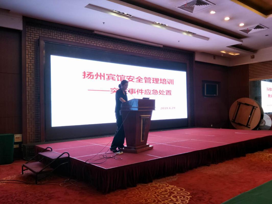 6月29日下午,扬州宾馆总经理徐静对宾馆全员进行了安全管理培训。课上从各部门应对火灾的流程和员工工伤的处理流程进行了详细的讲解,从工作实际出发,在讨论中学习,强化安全意识。