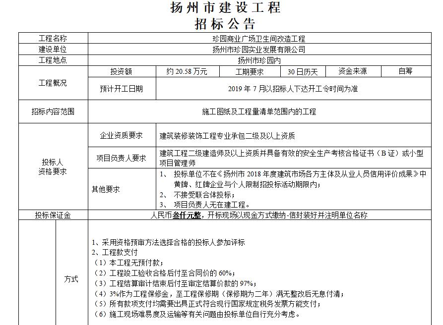 扬州市建设工程招标公告
