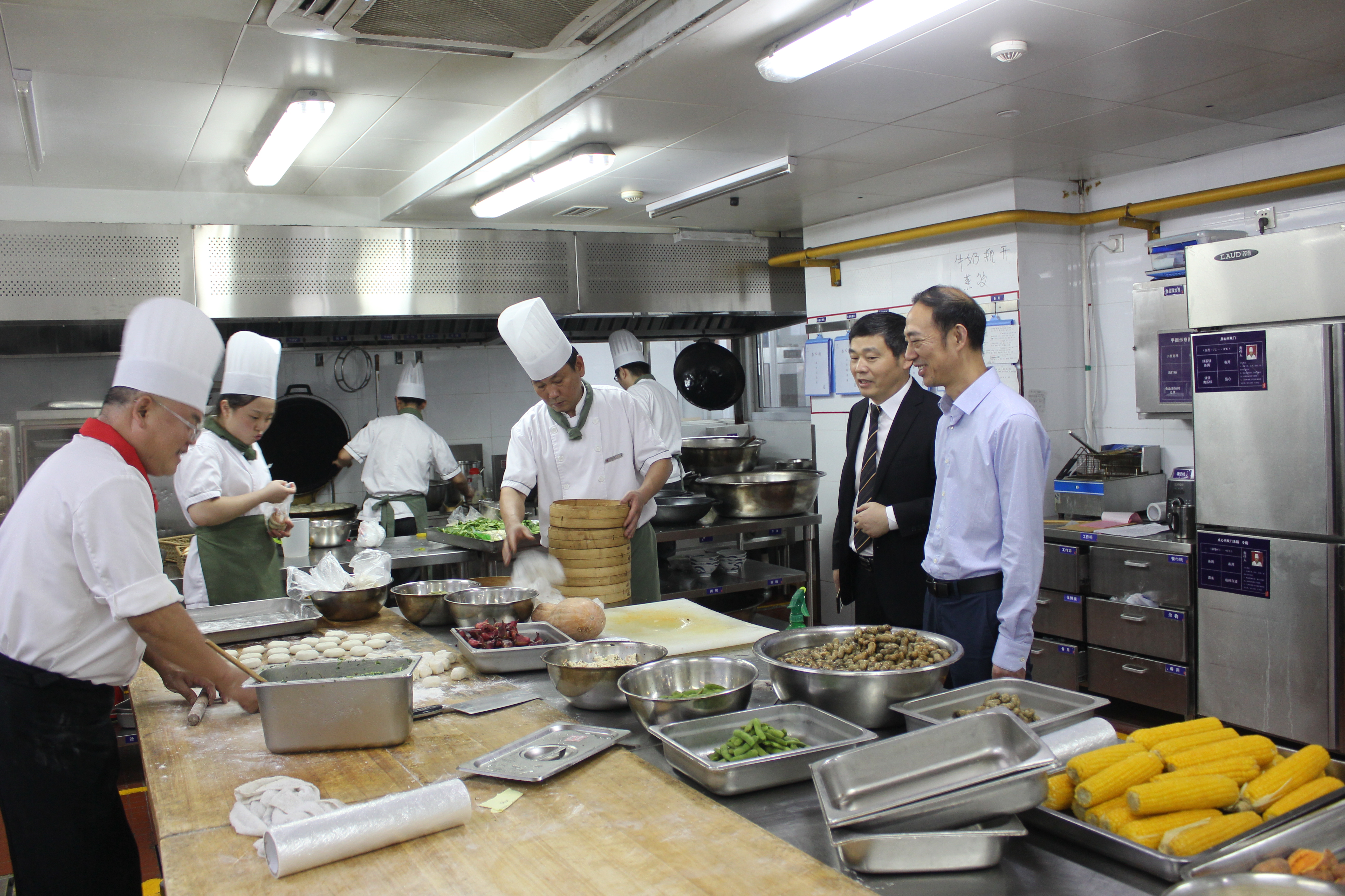 扬子江集团总经理蔡余良和副总经理陈国春视察后厨准备情况