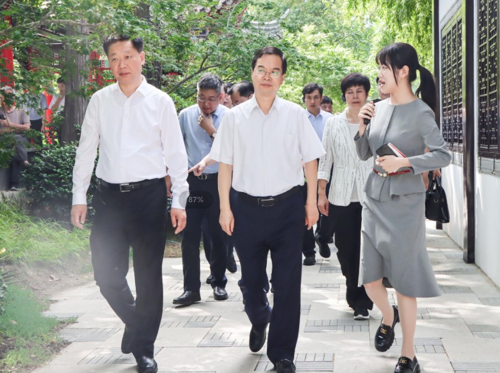 7月6日上午,来扬考察的开封党政代表团到北护城河文旅集聚区的重要节点冶春和文汇阁进行考察,扬州市委副书记、代市长潘国强等陪同。扬子江集团总经理张荣参加活动。