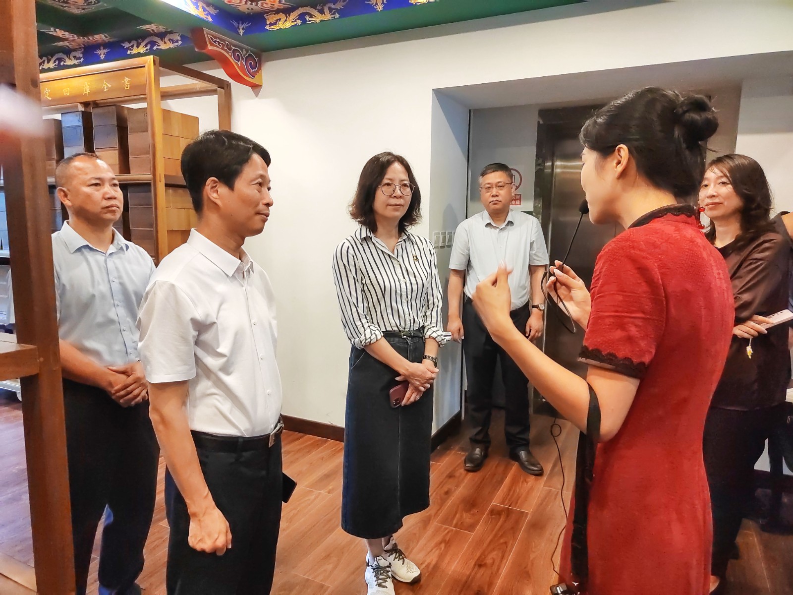 考察团一行在文汇阁参观了一楼历史文化展陈、三楼收藏的《四库全书》以及负一楼的四库书房,了解了文汇阁的建造缘由、文化底蕴、习近平总书记讲话中引用《四库全书》语句的释义、《四库全书》与扬州的关系以及文汇阁的复建等相关情况,点赞扬州挖掘历史文化、树立文化自信、讲好中国故事的举措。