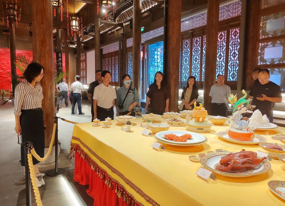 在中国淮扬菜博物馆,考察团一行详细了解了淮扬菜发展历程、历史文化、五名建设、烹饪技术人才培养、世界美食之都建设情况,驻足在庆云堂内的开国第一宴席和满汉席前,真切感受淮扬菜历史文化的源远流长和两大宴席的恢宏气势。