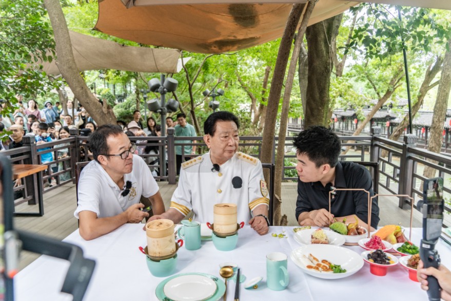 “轻轻提,慢慢移,先开窗,后喝汤”,在扬州特色清曲《扬州月》的伴奏下,陈恩德与俞敏洪、董宇辉共同品味扬州早茶,解密美食背后的匠心工艺,探寻淮扬美食的历史渊源,为广大网友上演了一场生动的扬州美食文化课。随后,在冶春餐饮公司相关负责人的带领下,俞敏洪、董宇辉一一参观、了解冶春独有的“花社”“诗社”“茶社”的三社文化,广大网友也通过直播镜头身临其境地体验到“红桥飞跨水当中,一字阑干九曲红”的文化胜景,并为冶春的美食、美景、美文频频点赞。