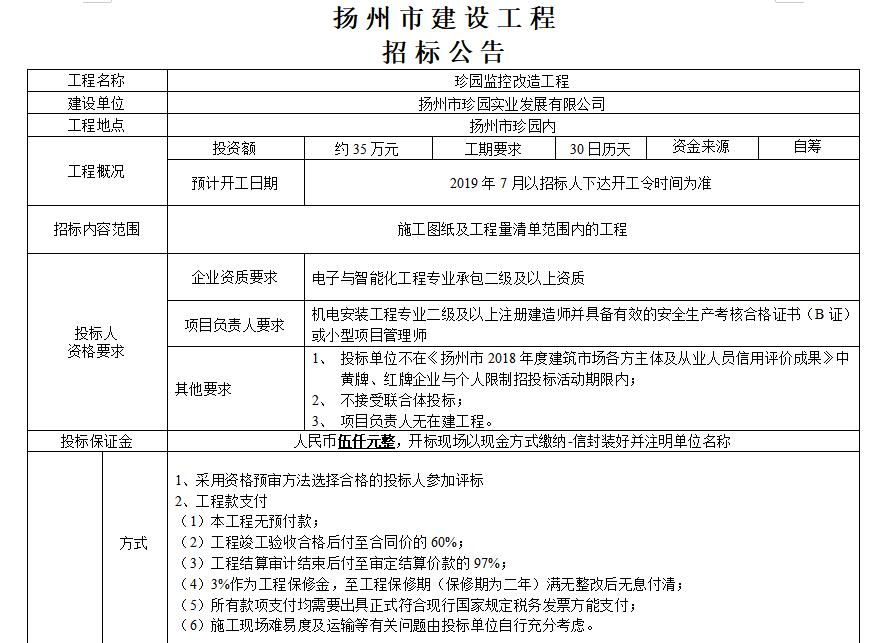扬州市建设工程招标公告