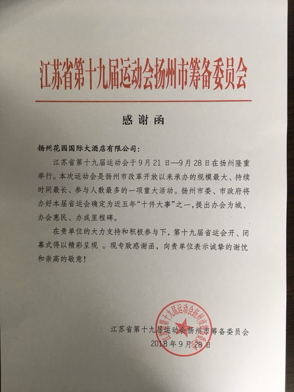 随着江苏省第十九届省运会的顺利闭幕,扬子江集团也圆满完成期间各项接待工作任务,讲大局、讲专业、讲高效的服务能力,不负市委、市政府和市国资委以及组委会的重托,展示了实力担当,锻炼了团队执行力,稳健了发展新步伐。