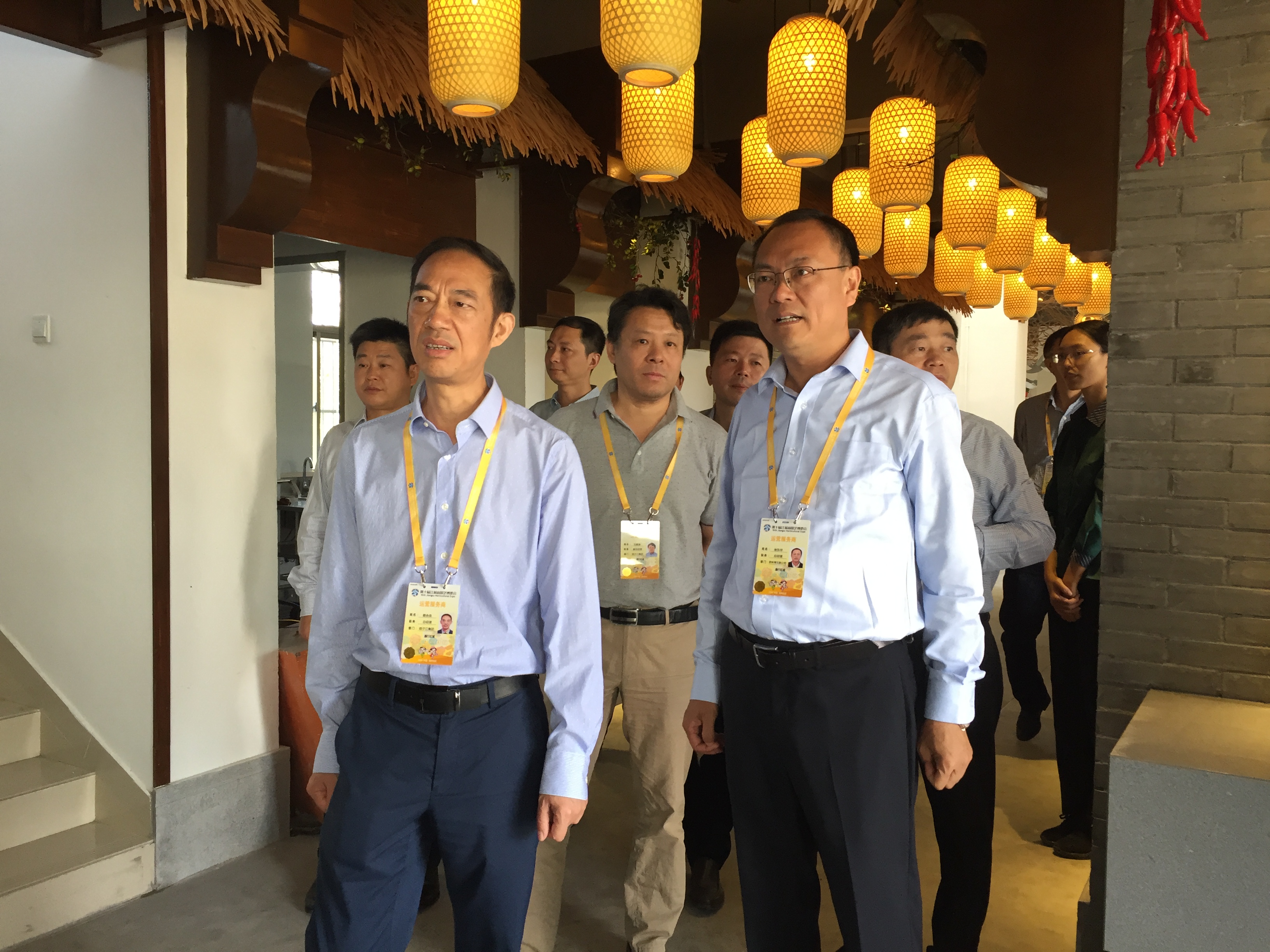 9月27日上午,集团总经理蔡余良率集团全体领导班子成员赴仪征枣林湾省园博会现场,调研集团承担各项工作的推进情况,就开幕前相关工作进行专项检查和布置。 蔡余良一行在扬子枣林湾公司的陪同下,检查了扬子食府(渔村)、水院美食荟、冶春食品展、云鹭咖啡等集团自营餐饮区域,参观了扬州炒饭、小淮娘、曼果等招商餐饮区域,了解了特许商品售卖及开园期间盒饭供应准备情况。