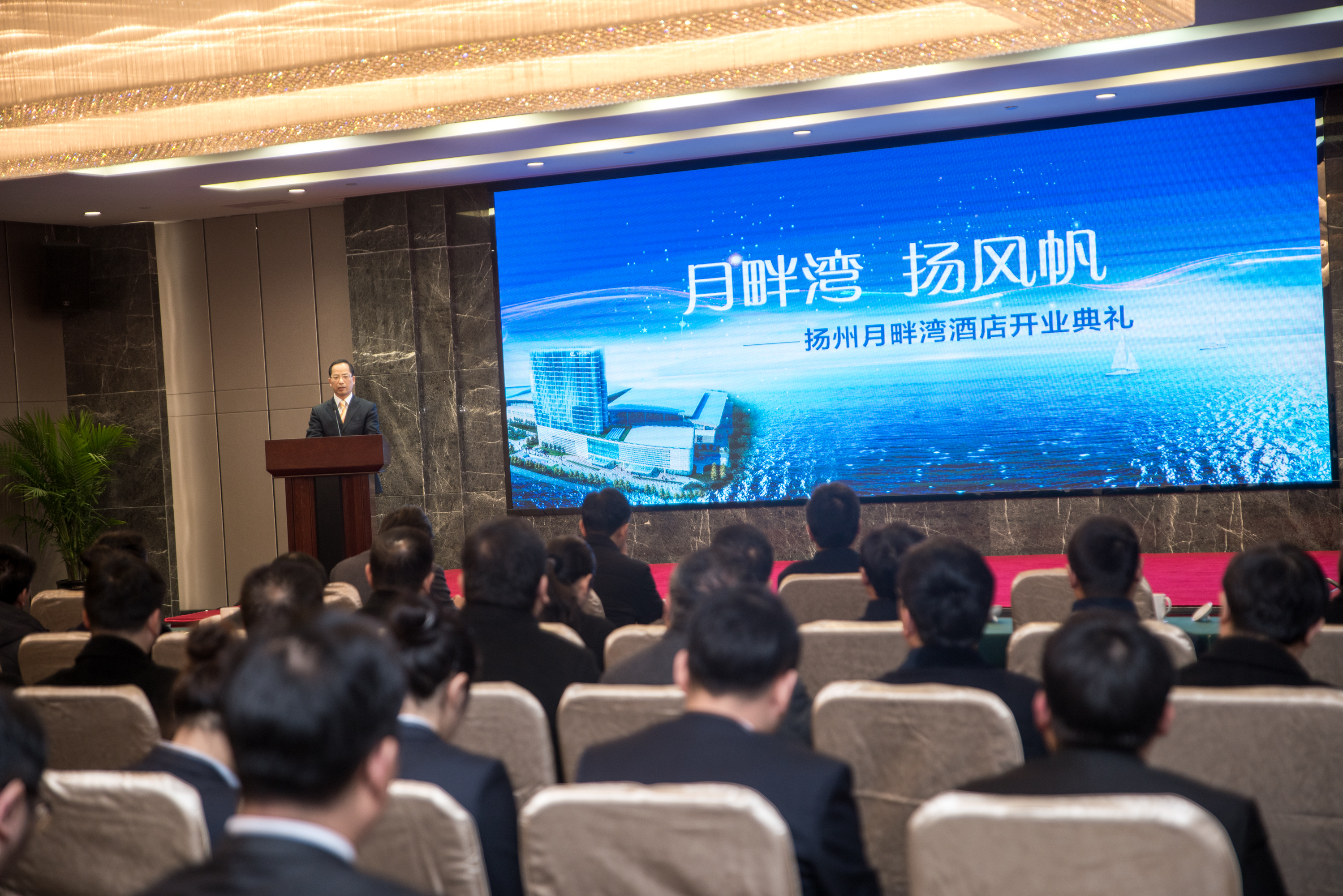 1月9日,在政协扬州市八届二次会议圆满闭幕、扬州市八届人大二次会议即将顺利闭幕之际,由扬子江会议中心经营管理公司精心打造的月畔湾酒店正式开业!集团党委书记、董事长龚振志和集团总经理蔡余良为月畔湾酒店开业揭幕。集团副总经理陈国春主持。集团领导班子,集团各全资及控股企业、扬州会议中心领导班子,金融集团领导班子,集团本部中层出席开业仪式。