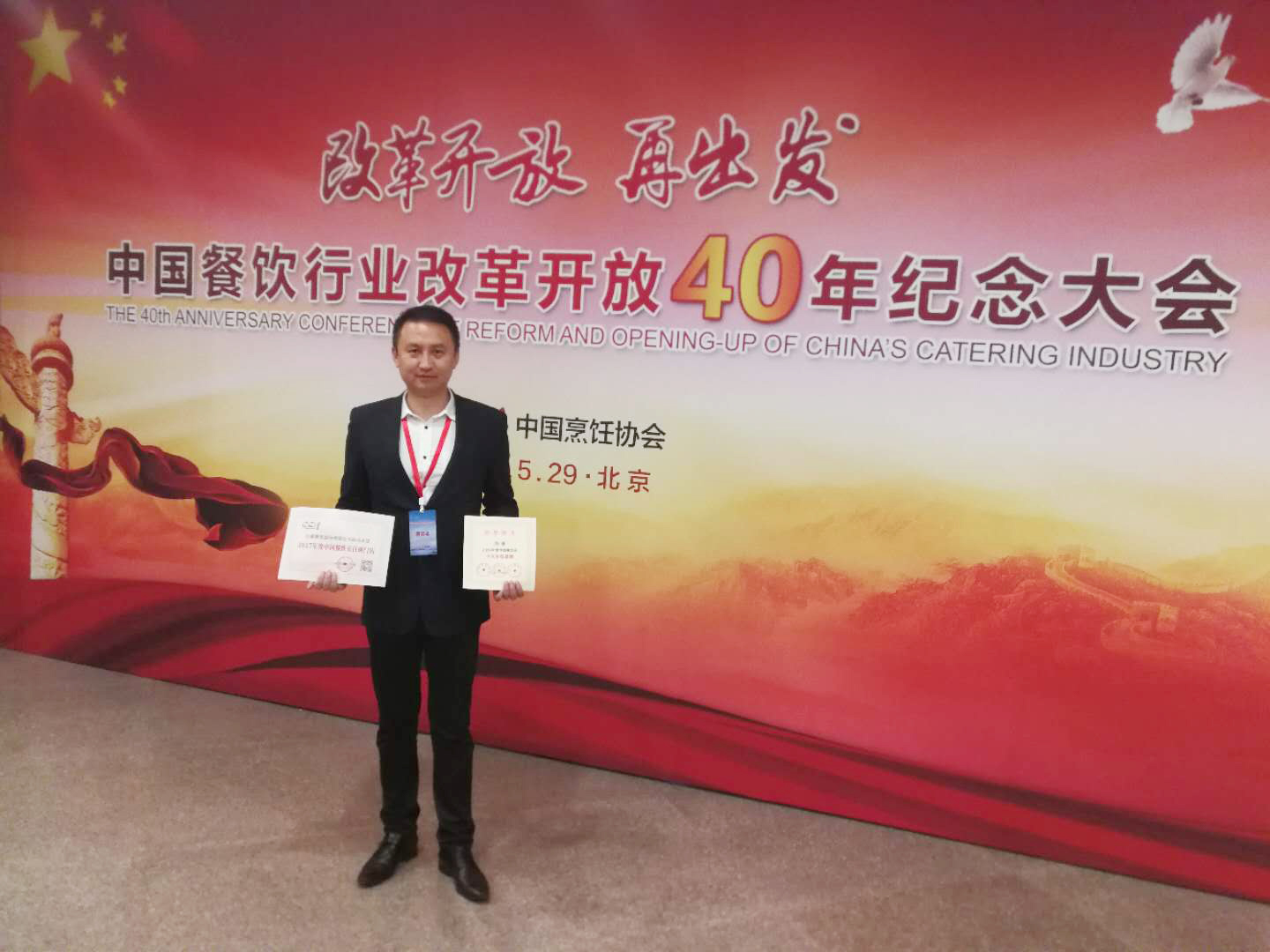 5月29日,中国烹饪协会“中国餐饮行业改革开放40年纪念大会和2018(第十二届)中国餐饮产业发展大会”在北京召开。大会总结了改革开放40年中国餐饮业取得的辉煌成果和发展经验,并发布了《改革开放40年中国餐饮行业发展报告》。经过40年改革开放的市场洗礼,中国餐饮取得了巨大的成就,市场规模从1978年的54.8亿元升至2017年的39644亿元,全国餐饮业营业网点1978年的不足12万个,到2017年,全国餐饮企业已达465.4万个,经营网点数量超过800万个的规模;中国餐饮从业人数从1978年的104.4万人到现在的约3000万人。 此次大会是中国餐饮行业的一次盛会,也是中国餐饮界的一件大事。冶春与全聚德、海底捞、王品、黄记煌、眉州东坡、真功夫、味千拉面、庆丰包子铺、沙县小吃、小杨生煎等中国餐饮各龙头企业在此相聚;众多行业的风云人物均出席了本次大会进行交流,更突显了本次大会的空前盛况。 为树立行业标杆,打造匠人精神,发挥品牌企业和先进人物的示范带头作用,展现中国餐饮业的新风采新作为,大会对改革开放40年来为中国餐饮行业发展作出突出贡献的单位和个人进行了表彰。冶春餐饮公司作为淮扬饮食文化杰出代表,通过多年不懈努力,以鲜明的早茶文化和以红楼宴、八怪宴等名宴为代表的淮扬传统美食为特色征服了中国烹饪协会的专家们和广大的消费者,在激烈的竞争中脱颖而出,独占鳌头,一举拿下了4个代表中国餐饮行业最高荣誉的大奖,这在全国的餐饮业中也是凤毛麟角,让所有与会人员刮目相看,纷纷前来表示祝贺。这些奖项分别是:冶春餐饮股份有限公司被中国烹饪协会评为“改革开放40年中国餐饮行业·老字号新辉煌企业”和“2017年度中国餐饮业十大小吃品牌”;冶春御马头店被评为“2017年度中国餐饮五百强门店”;与此同时冶春餐饮公司陈军总经理以其在业界中的突出表现,作为淮扬菜系和江苏省餐饮界的重要代表被中国烹饪协会授予“改革开放40年中国餐饮行业企业家突出贡献人物”,与荣获“改革开放40年中国餐饮行业技艺传承突出贡献人物”称号的扬州大学旅游烹饪学院周晓燕院长等一同被大会表彰。